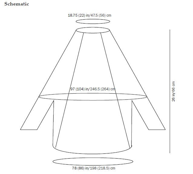 78 (86) in/198 (218.5) cm circumference at hem