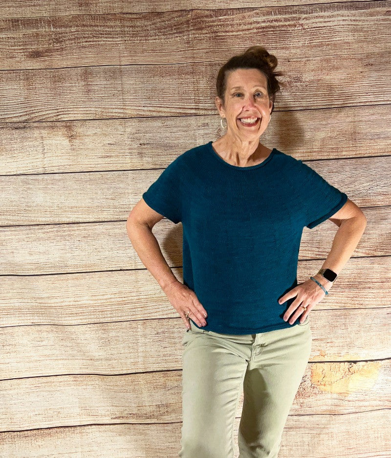 This top-down, circular yoke pullover is designed to be a wardrobe basic. It begins with a provisional CO to be finished later with an I-cord BO.